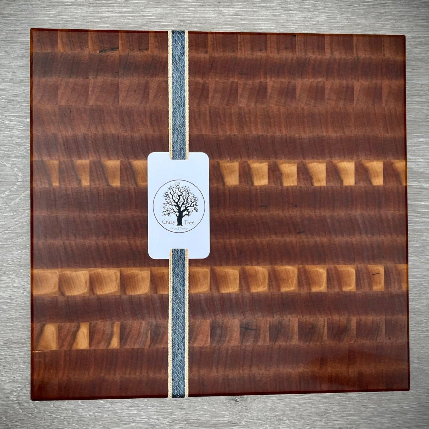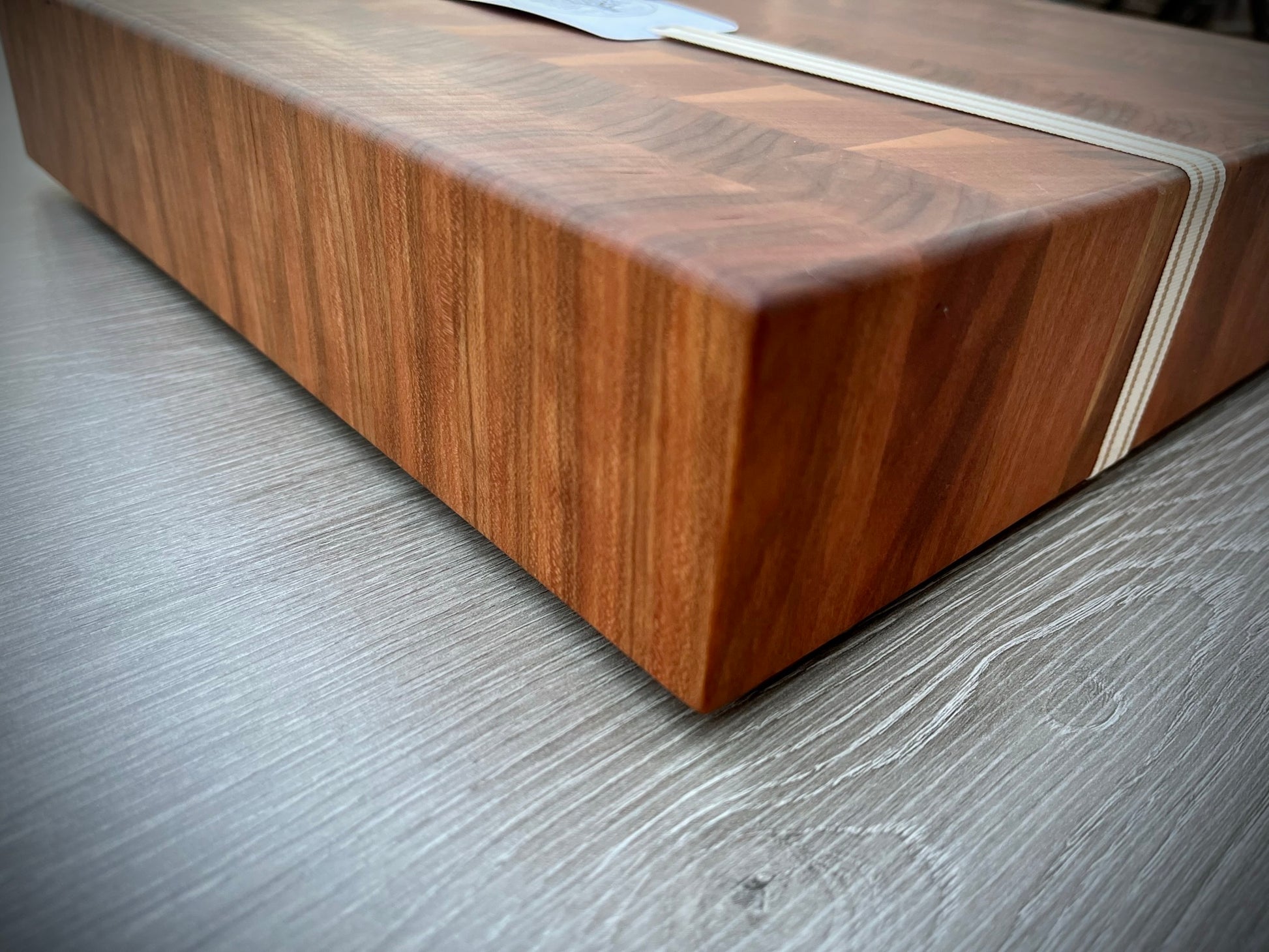 Each board starts with rough sawn lumber and is planed flat, cut into strips, glued up, planed flat again, crosscut, and glued up another time. Then sanded up to 400 grit sandpaper and finished with multiple coats of food grade mineral oil and a final coat of mineral oil/beeswax mixture. End grain cutting boards are known to be great for keeping your expensive knives sharp and will last a lifetime.