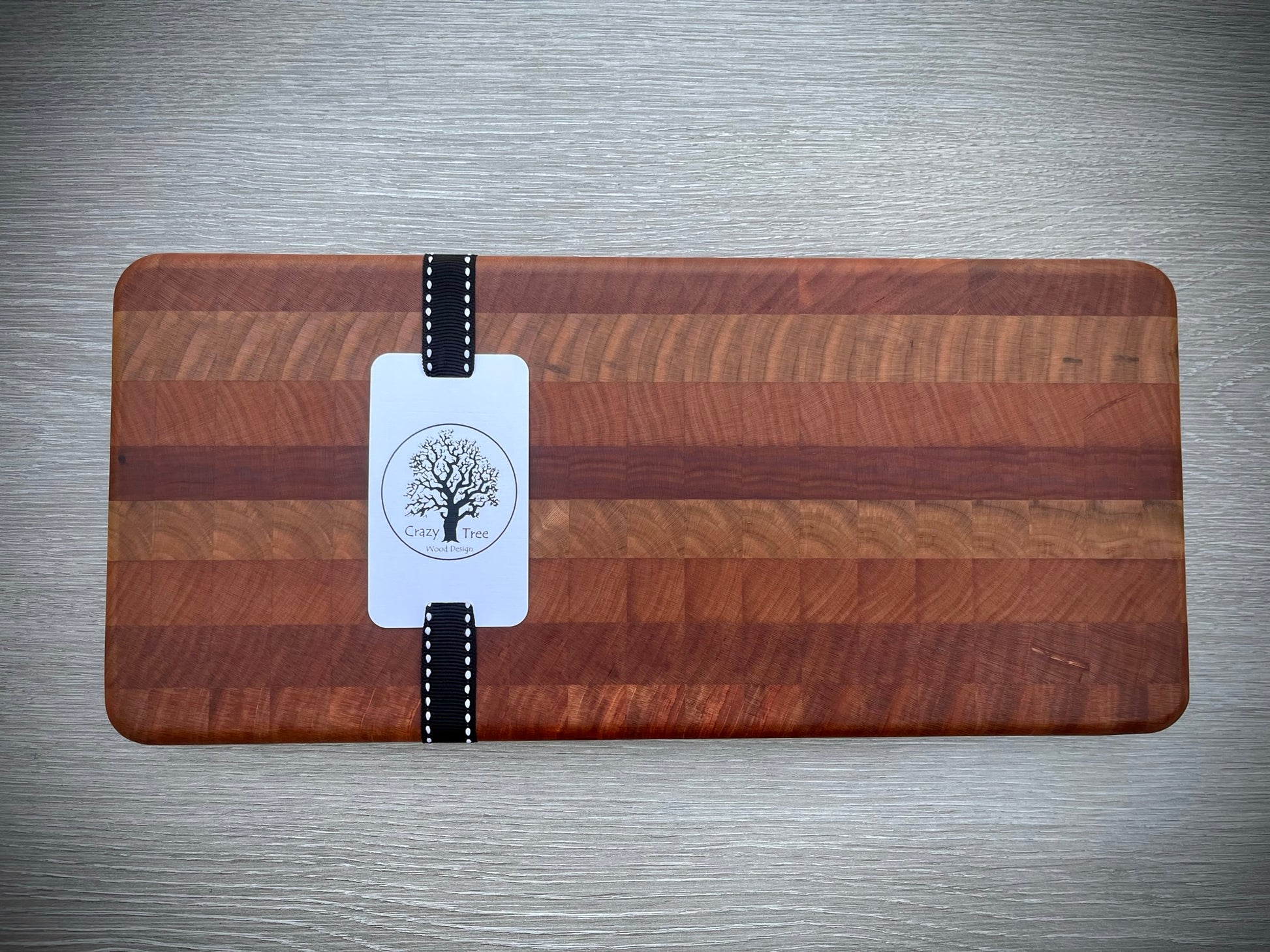 Hand crafted end grain cheese board. Approximately 6" x 12" x 1" with rubber feet. The boards will very in coloration and design due to the variation in the wood grain.
